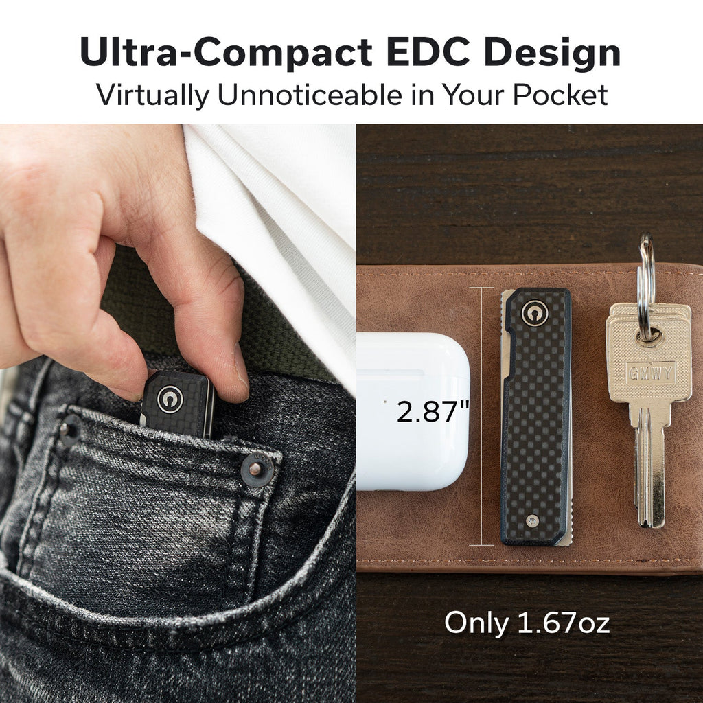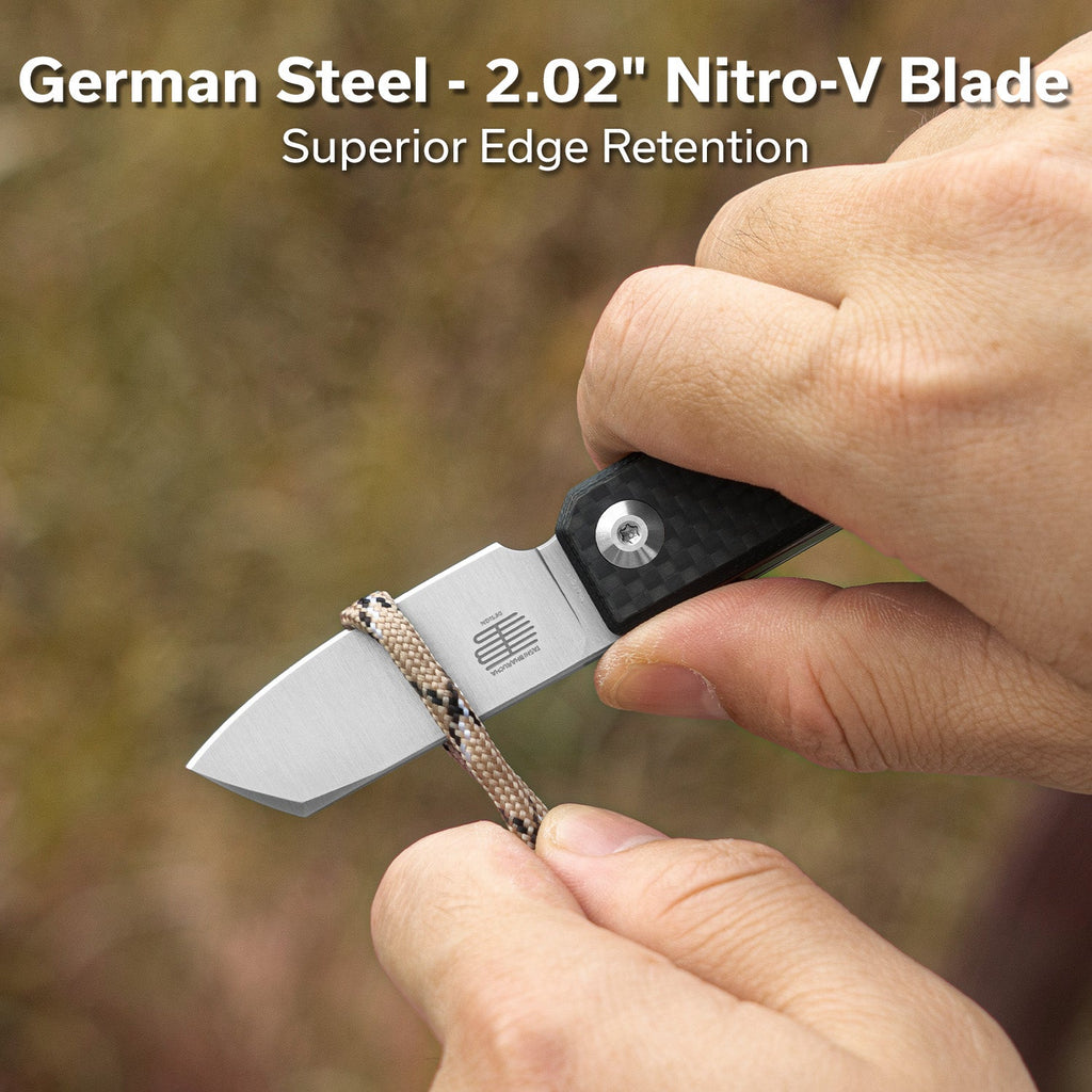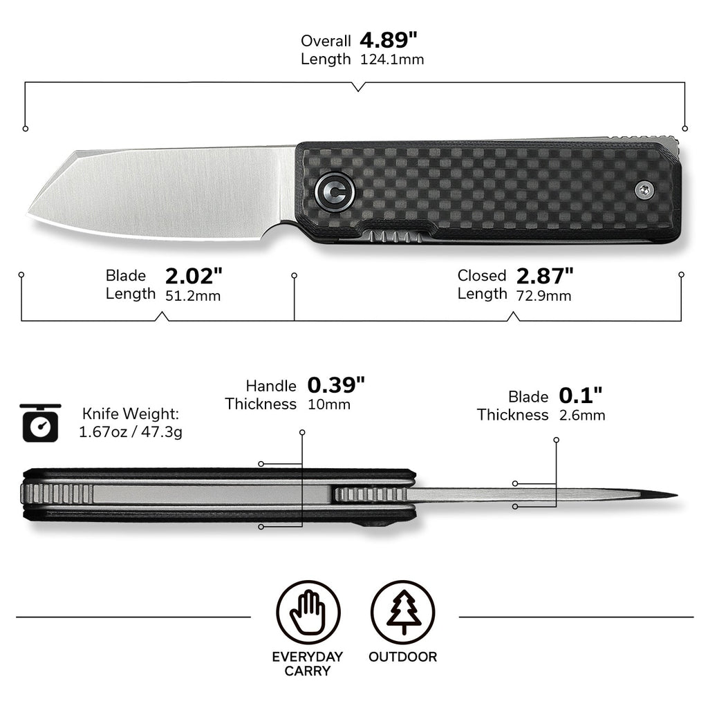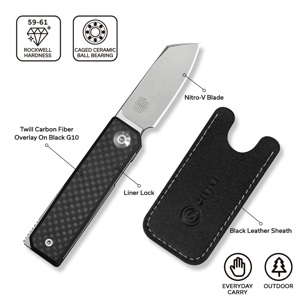 CIVIVI Kukei Front Flipper Knife Twill Carbon Fiber Overlay On Black G10 Handle (2.02" Satin Finished Nitro-V Blade) C25036-4, With 1PC Black Leather Sheath