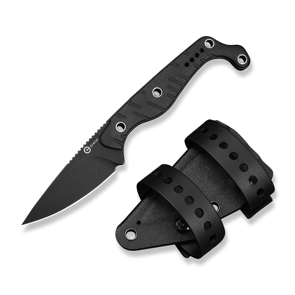 CIVIVI SŌKN Fixed Blade Knife Black G10 Handle (2.82" Black Stonewashed Nitro-V Blade) C22027-3, With 1PC Black Kydex Sheath & 2PCS Black Straps