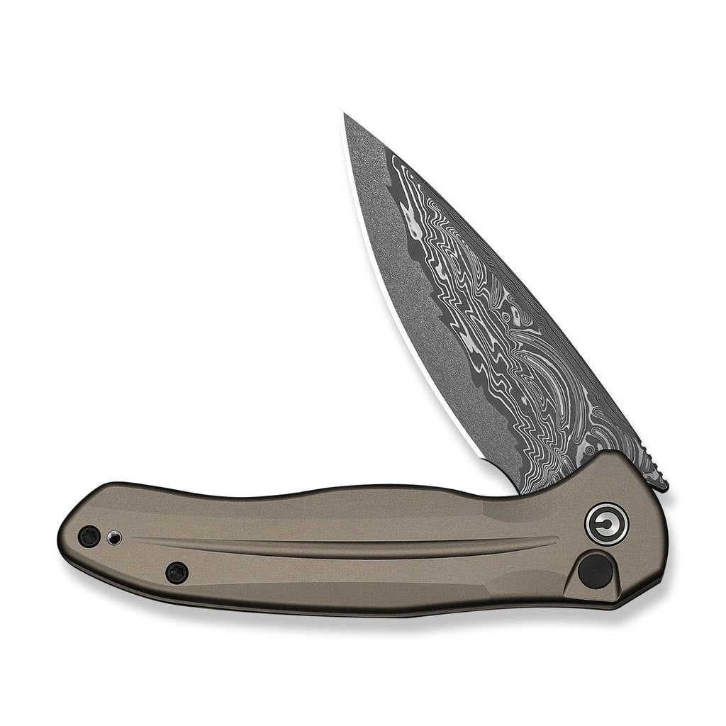 CIVIVI Button Lock Kitefin Flipper Knife Brownish Gray Aluminum Handle (3.22" Damascus Blade) C24091-DS1