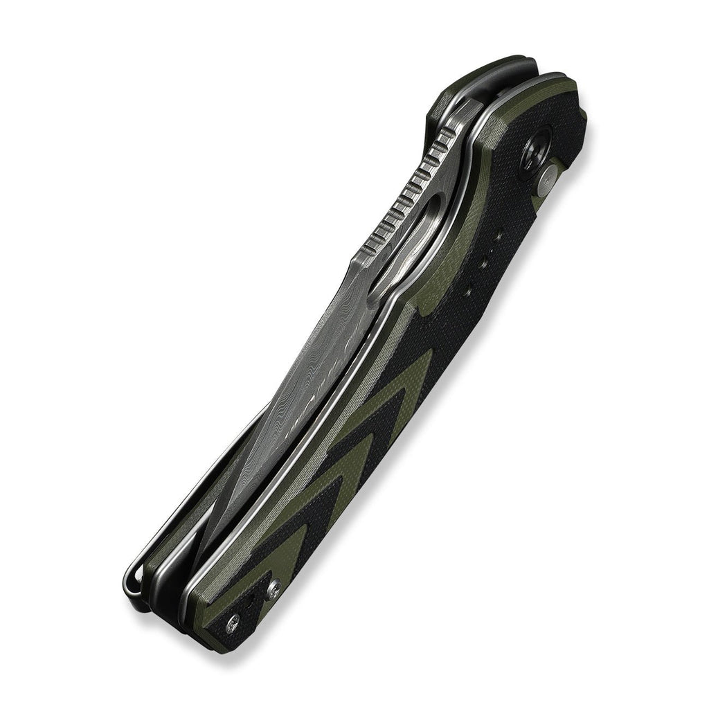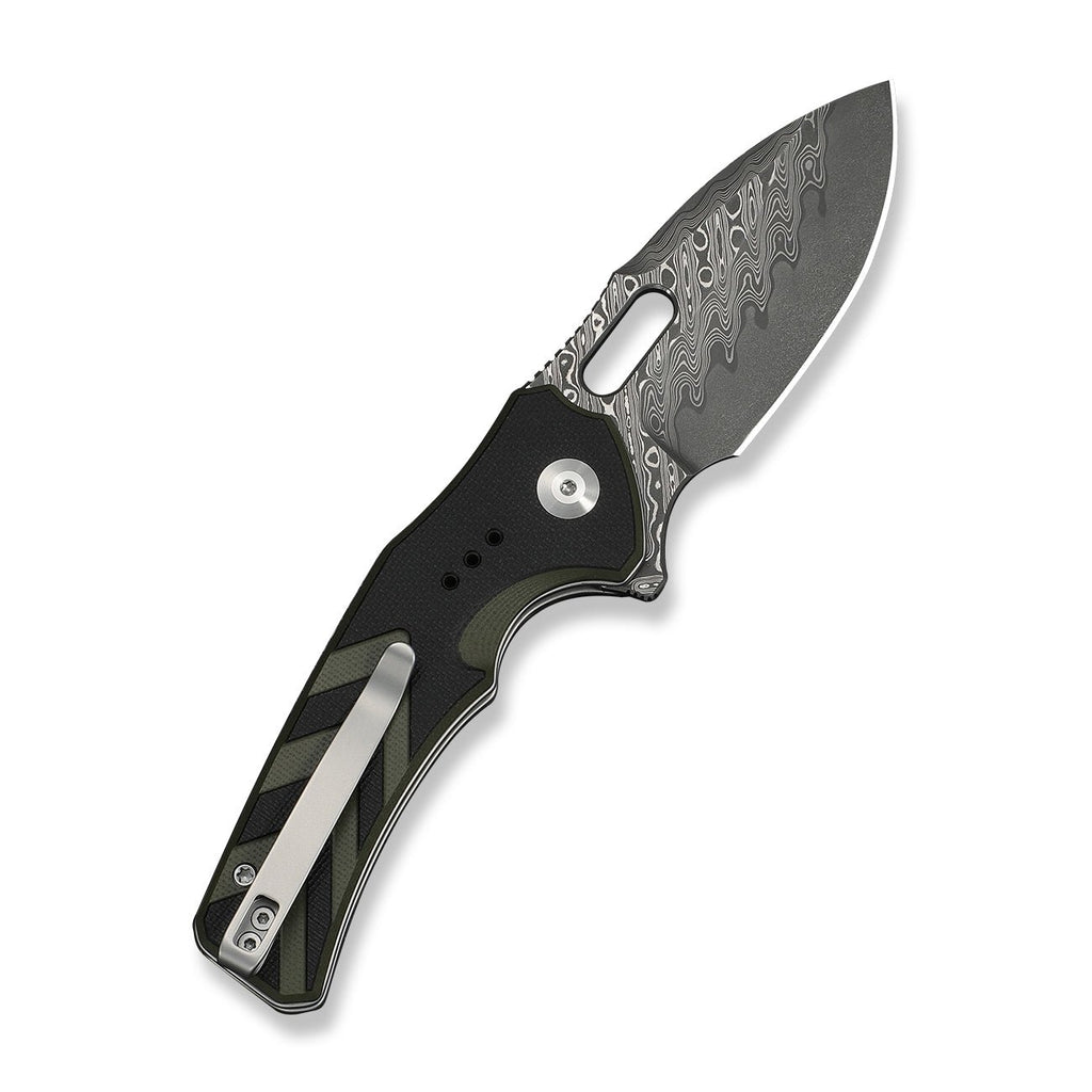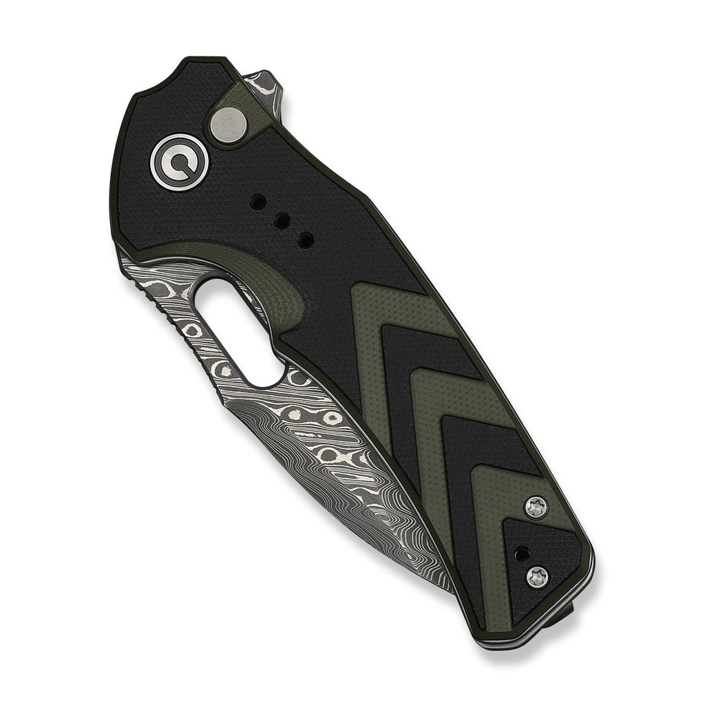 CIVIVI Vexron Flipper & Thumb Hole & Button Lock Knife Milled Black & Green G10 Handle (2.98" Damascus Blade) C24066-DS1