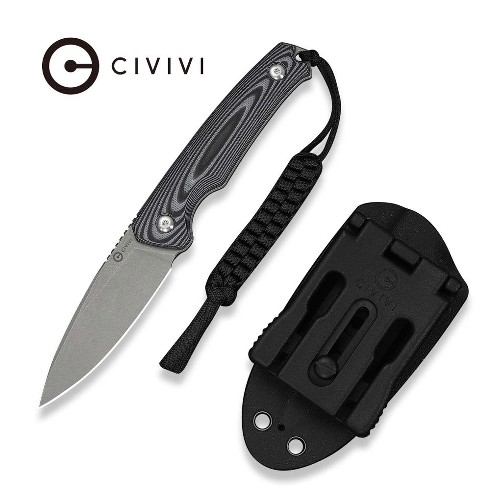 CIVIVI Altus Fixed Blade Knife Gray and Black Layered G10 Handle (2.99" Gray Stonewashed 14C28N Blade) C20076B-2, With 1PC Black Lanyard, Black Kydex Sheath & T-Clip