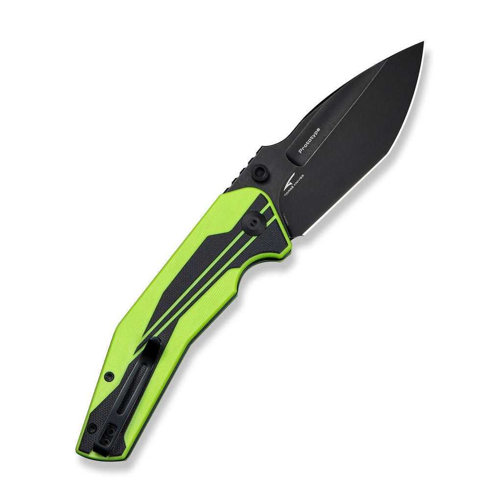 CIVIVI Wellmax Thumb Stud & Button Lock Knife Fluorescent Green & Black G10 Handle (3.6" Black Stonewashed 14C28N Blade) C24008A-Sample2