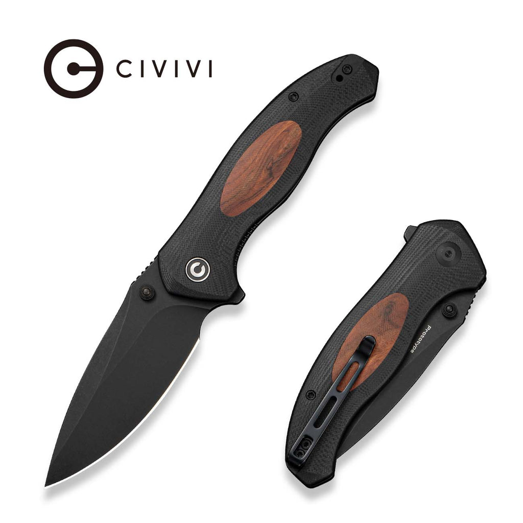 CIVIVI Vyrent Flipper & Thumb Stud Knife Black G10 Handle With Guibourtia Wood Inlay (3.48" Black Stonewashed Nitro-V Blade) C25037 Sample1