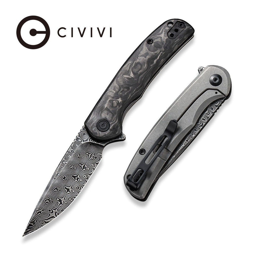 CIVIVI NOx Flipper Knife Carbon Fiber & Stainless Steel Handle (2.97" Damascus Blade) C2110DS-1